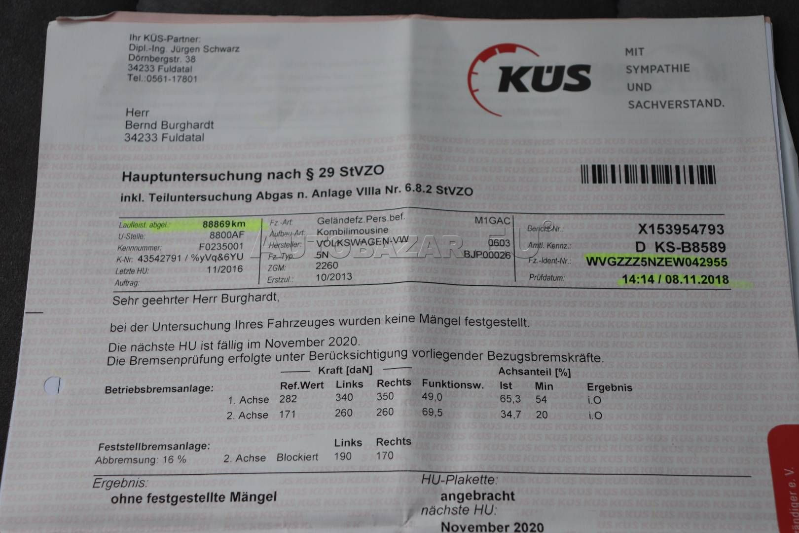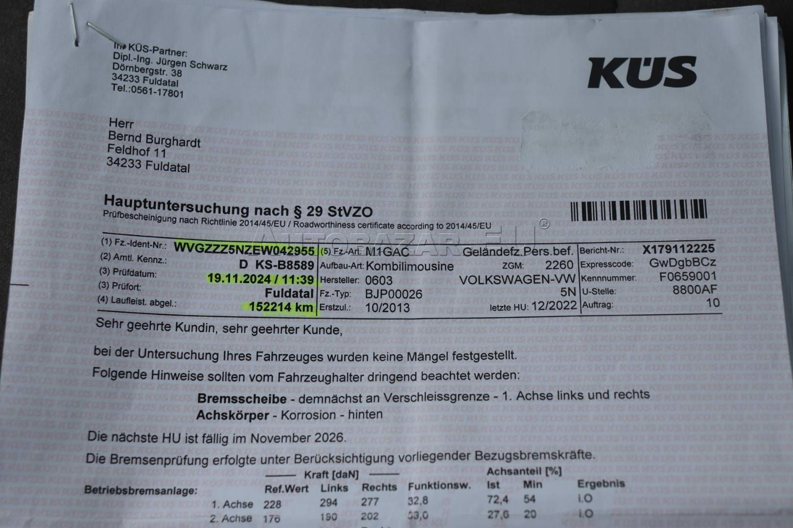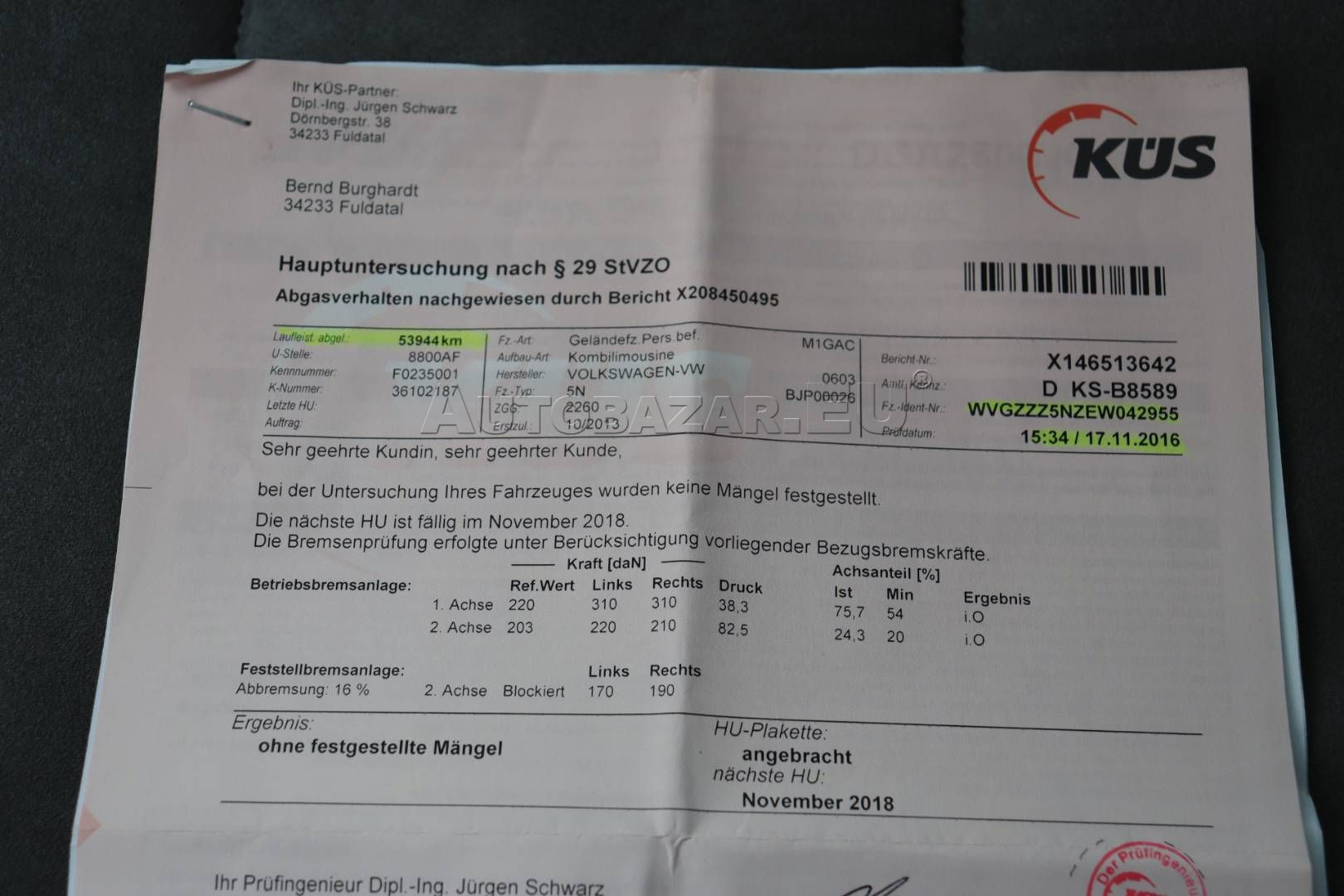 VIN: WVGZZZ5NZEW042955