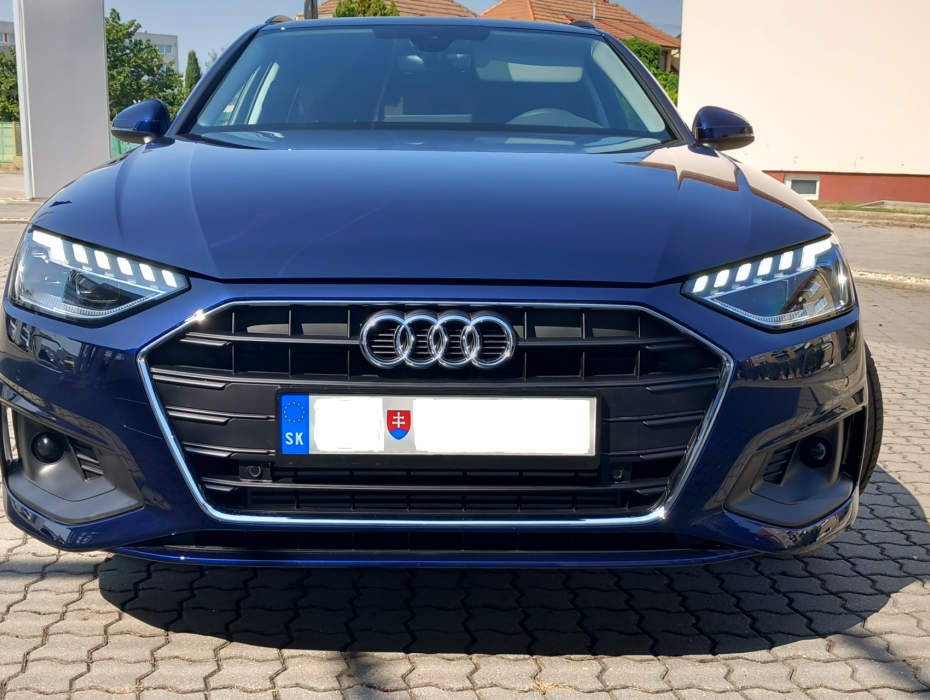 predám z dôvodu kúpy nehnuteľnosti, vyr. 7/24, len 8.400km, kúpené v SR, záruka a predplatený servis do 7/27,bohatá príplatková výbava ako napr. 3-zónová klimatizácia, elektrické sedadlá vpredu s masážnou funkciou, poťah sedadiel Alcantara/koža, výplne dverí, madlá a opierky vo dverách a bočné časti stredovej konzoly v koži, vyhrievané predné aj zadné sedadlá, tmavé sklá od B stĺpika, slnečná clona na zadných bočných oknách, výsuvné slnečné clony, parkovacia kamera, automatický parkovací asistent, ambientné osvetlenie, osvetlenie vonkajších kľučiek vpredu aj vzau pri odokmnutí vozidla, akustické predné bočné sklá, 18“ disky s pneu 245/40, Matrix LED svetlomety s dynamickou svetelnou scenériou vpredu aj vzadu, dynamické smerovky vpredu aj vzadu, cez aplikáciu MyAudi je možné aktivovať navigáciu, z príslušenstva sú kúpené gumové rohože, LED projekcia „audi kruhy“ pri otvorení dverí vpredu aj vzadu, VIN print (aby vozidlo mohlo byť poistené aj pre prípad krádeže), 18“ zimné komplety. ide o posledné vozidlo strednej triedy s manuálnou prevodovkou vyrobené od r 2024, už žiadne vozidlo strednej triedy nie je možné zadať do výroby s manuálnu prevodovku a toto je úplne posledné vozidlo Audi A4 s manuálnou prevodovkou a má 110kW/150k pri 4.000ot, objem 1.984ccm, 270Nm od 1.300ot.Zrýchlenie 0-100 za 8,8s síce nie je dychberúce, ale na bežné jazdenie plne postačuje a v praxi je dôležitejšie pružné zrýchlenie, kde NAMERANÉ pružné zrýchlenie 40-107 je 6,2s, čo je rovnaké ako má Audi A4 Avant 40TDI Quattro 150kW/204k S-Tronic, pretože táto verzia je o 100kg ťažšia ako predávané vozidlo a NAMERANÉ pružné zrýchlenie 60-120 je 7,1 s, čo je takmer rovnaké ako u Audi A4 Avant 40TFSI 150kW/204k S-Tronik- to má za 6,8s a A5Avant 150TFSI Quattro to má až za 7,3s!Vozidlo má nižšie prevádzkové aj servisné náklady než porovnateľné vozidlo s automatickou prevodovkou, podľa WLTP oproti verzii 40TFSI má nižšiu spotrebu paliva v meste až o 1.0 l a kombinovanú o 0.8 l a len o 0.3 l vyššiu kombinovanú spotrebu oproti verzii 40 TDI Quattro. a cena servisných prehliadok je cca o 80-250,- EUR nižšia než u vozidiel Audi A4 s S-Tronicom - info od autorizovaného servisu. Manuálna prevodovka je servisne menej náročná ako S-Tronic, navyše S-Tronic potrebuje časté finančne náročnejšie výmeny oleja, najlepšie aj s preplachom (cena takejto výmeny sa pohybuje okolo 400,- EUR) a občas majú poruchy – dvojspojkové prevodovky sa neopravujú, ale rovno vymieňajú ! a výmena len za repasovanú stojí min. 2.500 EUR a za novú asi 2x viac. Naftové Audi A4 majú navyše často problémy so systémom AdBlue, so vstrekovačmi a so systémom spracovania výfukových plynov a šesťvalcové 3.0 TDI navyše problémy s vačkovou hriadeľou a únikom chladiacej kvapaliny, nehovoriac o náročnej výmene rozvodov, kedy musí ísť celý motor von z auta -info od autorizovaného servisu.Možné financovanie. O cene nezjednávam! Viac info o vozidle IBA e-mailom-neznáme čísla kvôli podvodníkom hneď blokujem