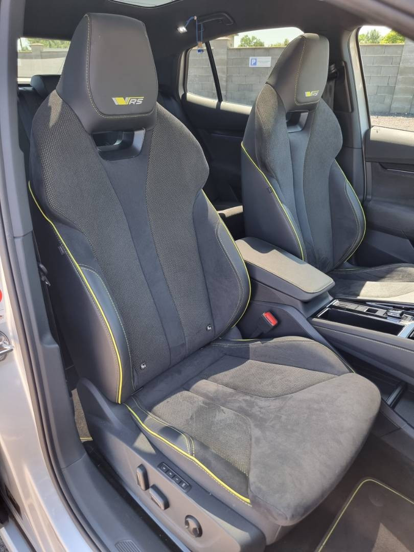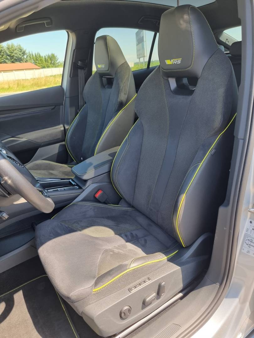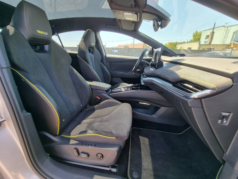 Predné a zadné Full LED svetlomety s dynamickými smerovkami, Podsvietená predná maska, Tripling, Funkcia Coming/ Leaving Home, Ovládanie okien na diaľkové ovládanie, El.sklopné zrkadlá, Naklápanie spätného zrkadla pri cúvaní, Dáždnik vo dverách vodiča, Prémiové audio CANTON s priestorovým zvukom, Limiter, Protikolízny systém Front Assist, Travel Assist, ECO asistent, Slovenské menu, Inteligentná klimatizácia s funkciou AirCare, Pokročilé ambientné LED podsvietenie interiéru, Programovateľné nezávislé kúrenie/ vetranie, Battery Care Mode, Nastaviteľný režim jazdy, Športové el. sedadlá RS s bočným vedením a aktívnymi opierkami bedier, Interiér v kombinácii koža - brúsená koža, El.ručná brzda, Autohold, 3x Isofix, MirrorLink, 4x kamera+ režimy parkovania, Personalizácia, Asistent komfortného nastupovania/ vystupovania,