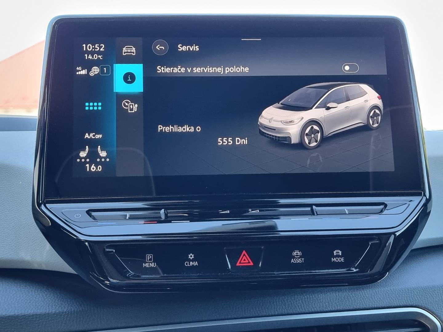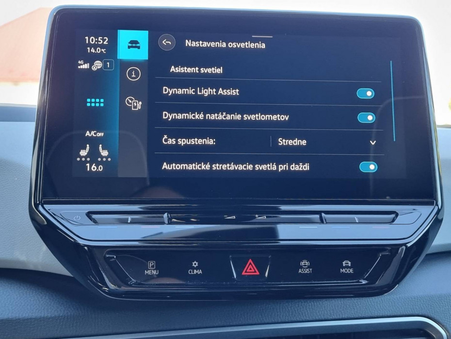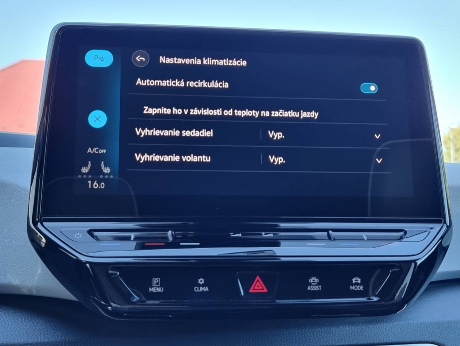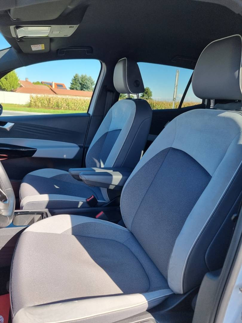 Ovládanie okien na diaľkové ovládanie, Detské poistky okná/ dvere, El.sklopné zrkadlá, Naklápanie spätného zrkadla pri cúvaní, Dynamic Light Assist, Full LED predné a zadné svetlomety s dynamickými smerovkami a s animáciou, Funkcia Coming/ Leaving Home, ID.Light - vnútorný svetelný asistent, Tripling, Nastaviteľný volant, Limiter, Slovenské menu, Optický parkovací systém, Funkcia brzdy pri posune, ECO asistent, Protikolízny systém Front Assist, Nastaviteľný režim jazdy, MirrorLink, Battery Care Mode, Asistent nabíjania, Personalizácia vozidla, Inteligentné ambientné LED podsvietenie interiéru, Programovateľné nezávislé kúrenie/ vetranie, Možnosť ovládania entertainmentu gestami, Voľba svetlého/ tmavého pozadia displeja, 2x USBc/ BT- audio vstup, Výškovo nastaviteľné sedadlá, 3x Isofix, Interiér v kombinácii textil- brúsená koža, 2x USBc charge, Autohold, Zadná lakťová opierka, SKY tunel na lyže, Originál 19" hliníkové disky, Sezónne prezutie na originál 18" hliníkových diskoch, Bezpečnostný šrób na kolesá, Kompletná kabeláž vrátane rýchlo nabíjacieho kábla,
