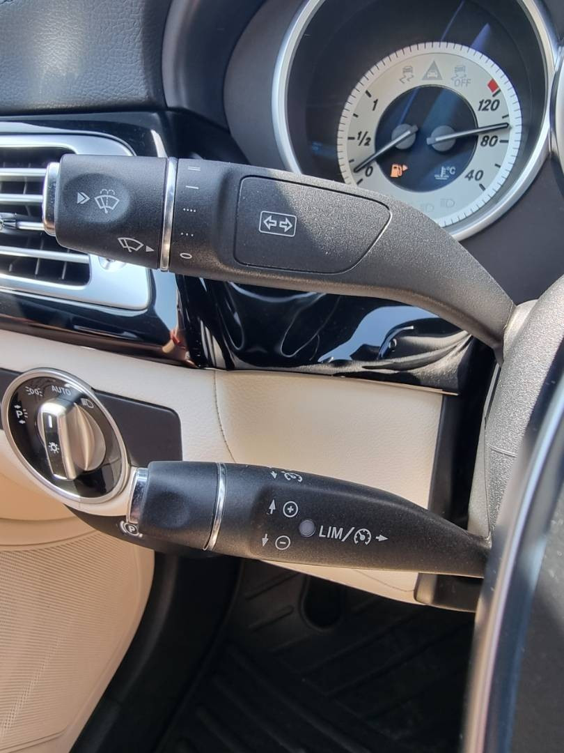 Ovládanie okien na diaľkové ovládanie, El.sklopné zrkadlá, Detské poistky okná/ dvere, Automatické svietenie, Inteligentné Multibeam LED svetlomety, Dosvetlovanie odchodu/ príchodu, Zadné LED svetlomety, Tripling, Nastaviteľný volant, Limiter, SD karta/ 2x USB/ BT- audio vstup, Nastaviteľný režim radenia, E/ S/ M, ECO režim, Nastaviteľný režim jazdy Sport/ Comfort, El.roletka zadného okna, Optický parkovací systém, 4x kamera s 360' zobrazením, Zadná lakťová opierka, Bedrová opierka, Interiér v elegantnej svetlej koži s perforáciou a čiernou stropnicou, Gumené rohože, Protikolízny systém Collision Prevention Assist Plus, Originál 18" AMG hliníkové disky, Textilné AMG koberce,
