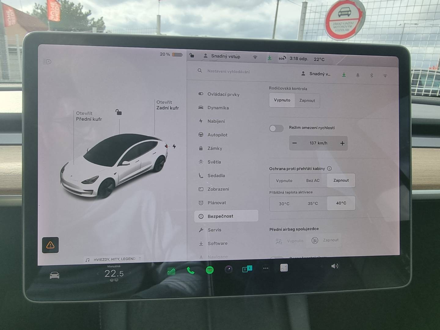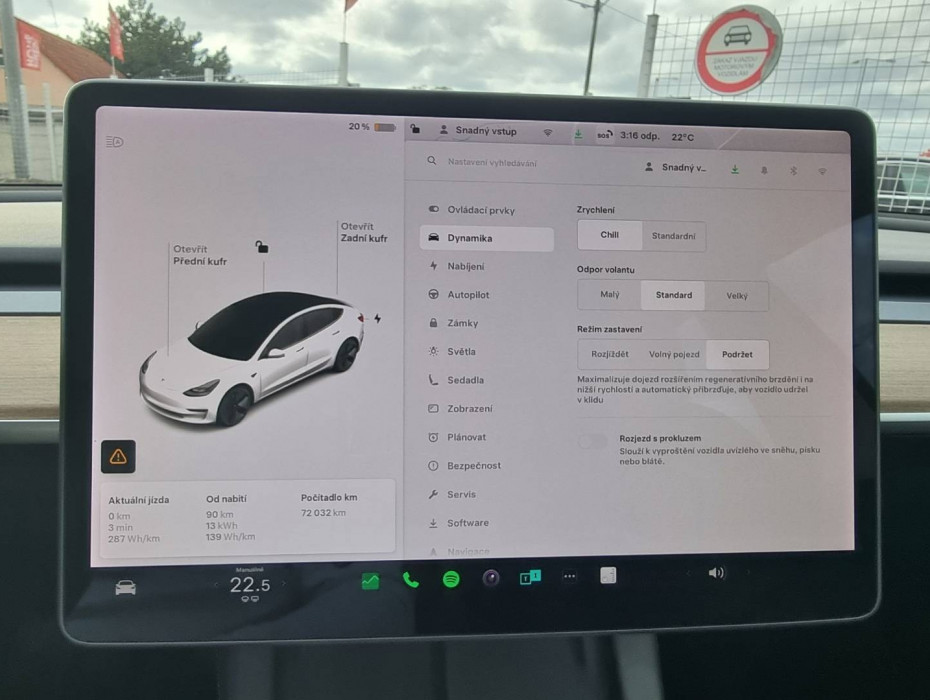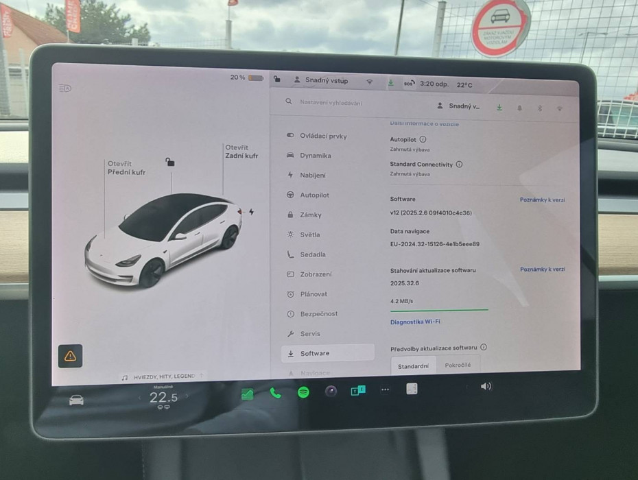 Full LED svetlomety s MATRIX funkciou, Navigacný systém s 10.25 obrazovkou - displej s HD rozlíšením, Aktívne bedrové opierky, Nastaviteľný režim akcelerácie/ riadenia/ brzdenia, Detské poistky okná/ dvere, El.sklopné zrkadlá, Automatické svietenie, El.nastaviteľný volant, Bezpečnostná, kamera, Plánovanie nabíjania, Autopilot, Výstražný protikolízny systém, Núdzové brzdenie, Automatické zatváranie okien, CZ menu, Hlasové ovládanie entertainmentu/ vozidla v angličtine, Zadná lakťová opierka, Dvojité dno kufra, Tripling, Zobrazovanie rýchlostných limitov, Funkcia mobilný kľúč - prístup/ sledovanie vozidla cez mobilný telefón, Sentry mód - v prípade potreby nahráva video exteriériu/ interiériu na 128GB USB, Rôzne režimy klimatizácie- Kemp/ Dog/ Udržiavanie, Optický parkovací systém, Pripojenie na Wifi, Internetový prehliadač, Aplikácie Spotify/ Netflix/ YouTube/ ...., ToyBox, Arkády, USBc/ BT-audio vstup, Automatická el.ručná brzda, Zadné LED svetlomety, Upozornenie na zelenú na križovatke, Nastavenie profilu vodiča, Asistent komfortného nastupovania/ vystupovania, Ochrana proti prehriatiu kabíny, Kompletná kabeláž vrátane rýchlonabíjacieho kábla, 18" hliníkové disky, Tepelné čerpadlo, Diaľkové chladenie/ vyhrievanie kabíny cez mobilnú aplikáciu, 2x USBc charge