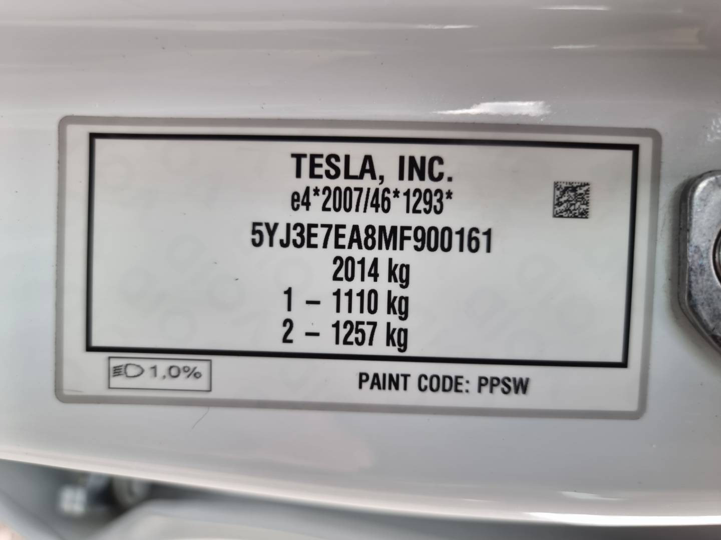 VIN: 5YJ3E7EA8MF900161