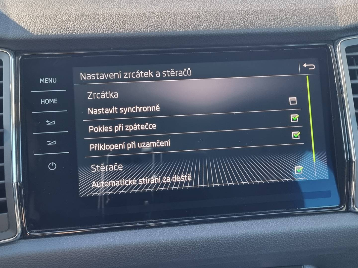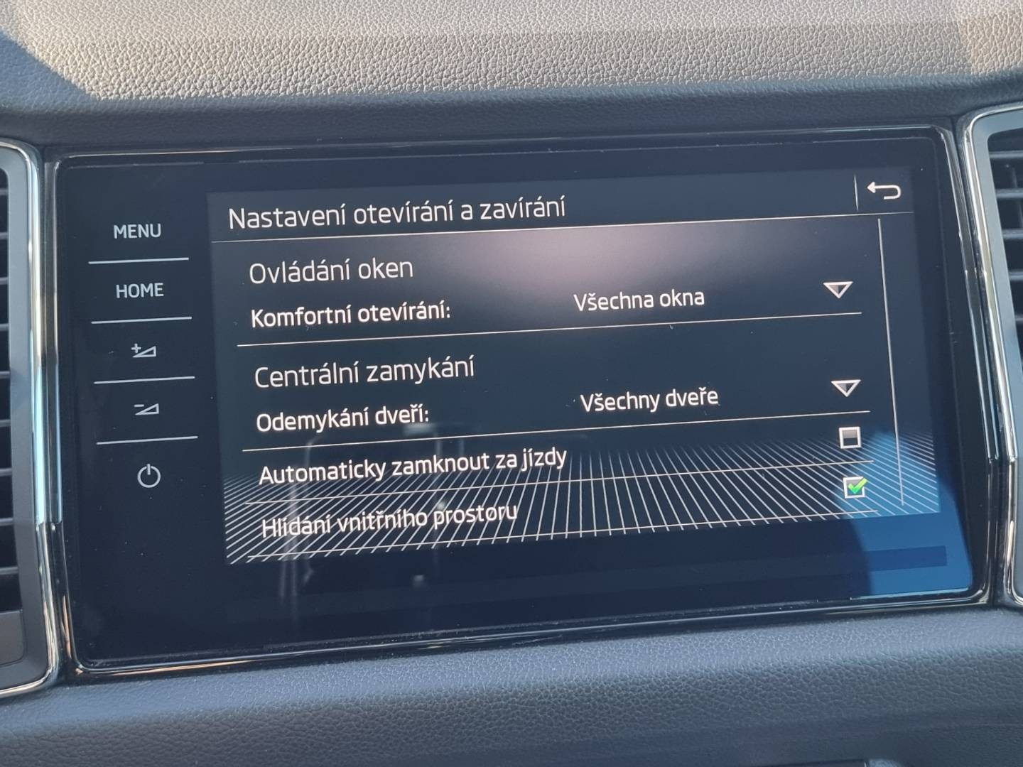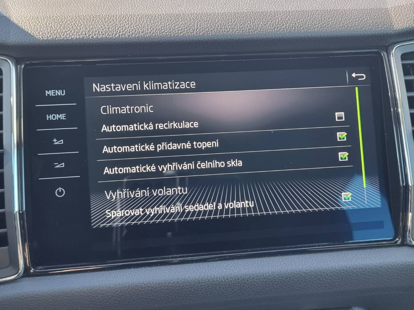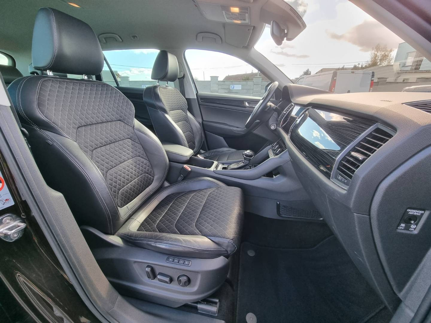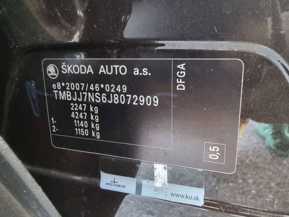 Ovládanie okien na diaľkové ovládanie, Detské poistky okná/ dvere, El.sklopné zrkadlá, Naklápanie spätného zrkadla pri cúvaní, Predné a zadné Full LED svetlomety s aktívnym natáčaním, Funkcia Coming/ Leaving Home, Tripling, Nasvetlovanie zákrut, Nastaviteľný volant, Limiter, Plne grafický MaxiDot farebný displej, Slovenské menu, Hlasové ovládanie entertainmentu v CZ, Jukebox - interný 10.4GB HDD, 2x SD karta/ 2x USB/ W- Lan/ SIM karta/ BT- audio vstup, ŠKODA Connect, SmartLink- MirrorLink, DriveGreen asistent, Protikolízny systém Front Assist, Rozpoznávanie prívesu, 4x kamera s 360* satelitným pohľadom+ zobrazenie 3D pohľadu s natáčaním, Funkcia manévrovacieho brzdenia, Asistent vyparkovania, Klimatizácia s funkciou AirCare, Automatické prídavné kúrenie TMC- dopravné hlásenia, El.zosilnenie reči, Ovládanie displeja entertainmentu gestom, El.ručná brzda, Autohold, Aktívne bedrové opierky, Interiér v kombinácii textil- koža, Ochranné dorazy hrán dverí, Dáždnik vo dverách šoféra, Prevodník napätia na 230V, USB charge, Zadná lakťová opierka, SKY tunel na lyže, 2.rada sedadiel posuvná/ polohovateľná/ sklopná, Originál 18" hliníkové disky, Zimné pneu na originál 17" hliníkových diskoch, El.výklopné ťažné, Ochranná vanička kufra, Úložné/ záchytné siete kufra,