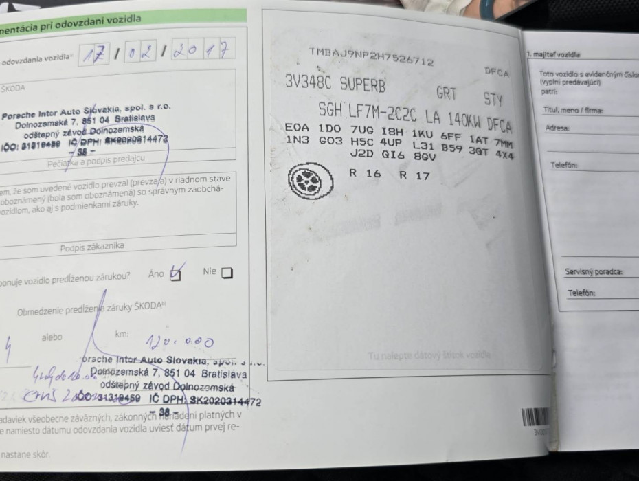 -Ako nové kúpené na Slovensku -MOŽNOSŤ VÝMENY STARÉ ZA NOVÉ -VOZIDLO V ZÁNOVNOM STAVE, PO 2. MAJITEĽOVI !!! NEBÚRANÉ – PÔVODNÝ STAV !!! -2.majiteľ -Uplná servisná história -Možnosť úveru už od 0% akontácie -Garancia stavu kilometrov -Pravidelný servis Škoda -Komplet výpis servisných úkonov k autu -Letné prezutie originál R17 -Zimné prezutie R16