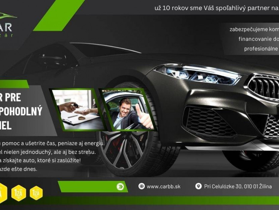Cena vozidla bez prihlásenia. Vozidlo si môžete preveriť v ľubovoľnom servise pred kúpou. V prípade záujmu vieme vozidlo prihlásiť. Preverené vozidlo, garancia stavu najazdených kilometrov. Možnosť zakúpenia predĺženej záruky až do výšky 3 rokov. Vozidlo si viete u nás zakúpiť aj na splátky už od 0 % akontácie. Schválenie vybavíme na počkanie, s vozidlom odchádzate v ten istý deň. Tešíme sa na Vašu návštevu.