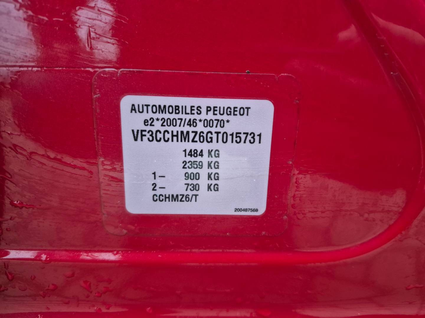 VIN: VF3CCHMZ6GT015731