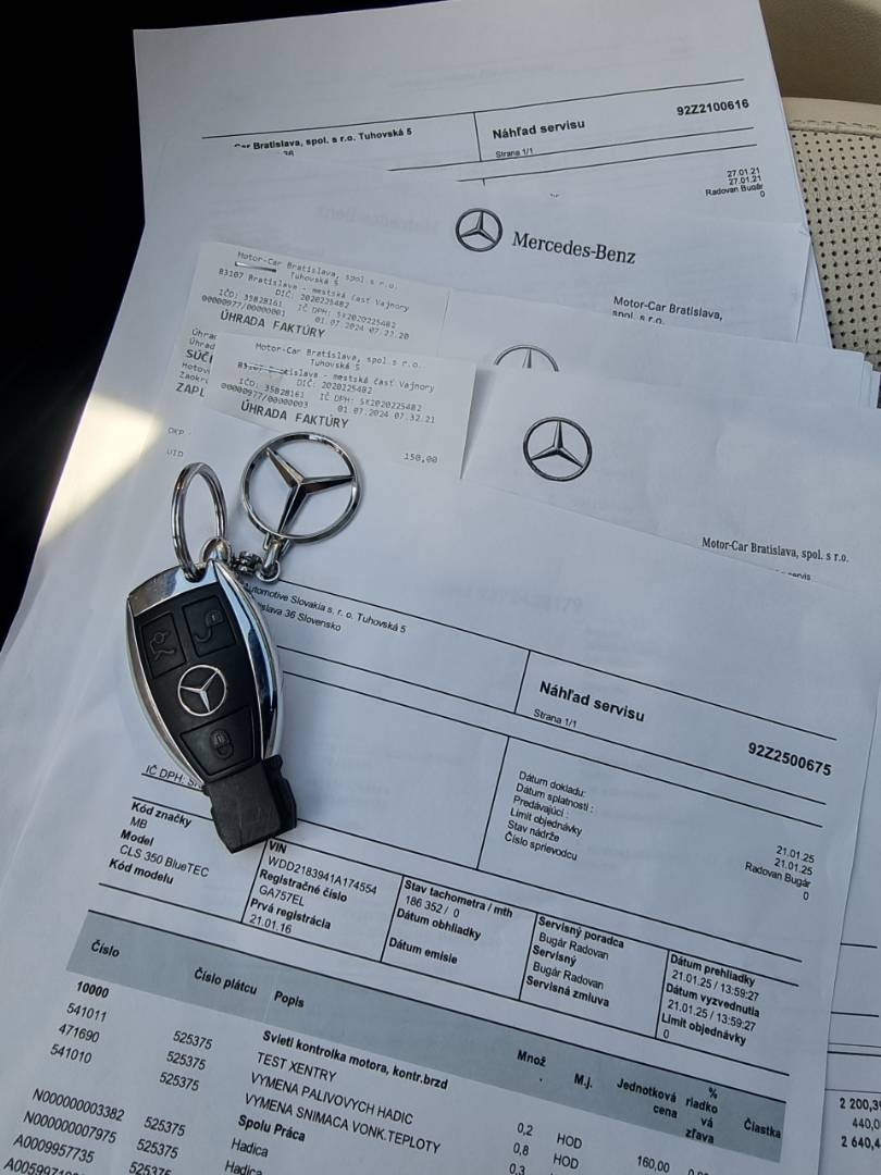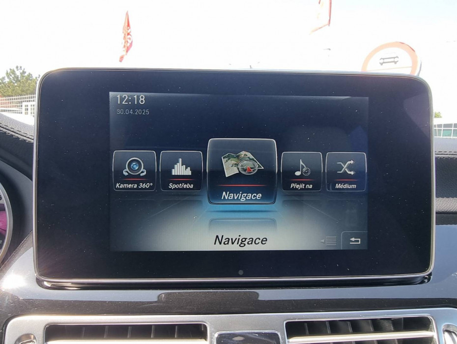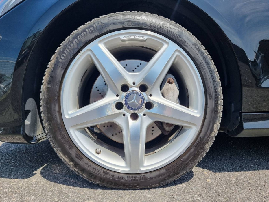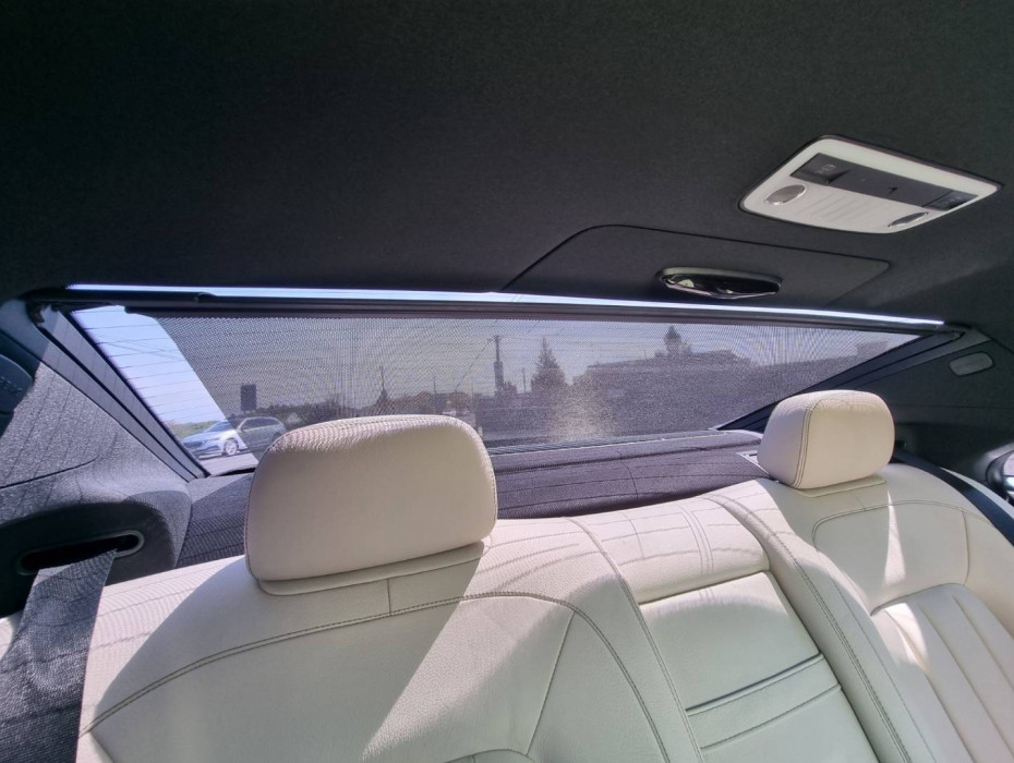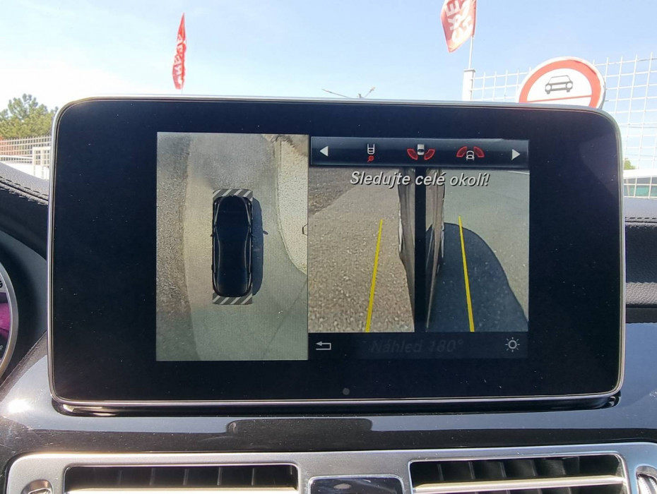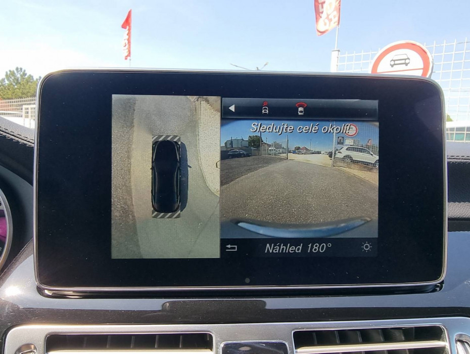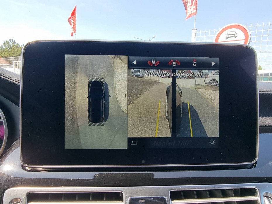 Ovládanie okien na diaľkové ovládanie, El.sklopné zrkadlá, Detské poistky okná/ dvere, Automatické svietenie, Inteligentné Multibeam LED svetlomety, Dosvetlovanie odchodu/ príchodu, Zadné LED svetlomety, Tripling, Nastaviteľný volant, Limiter, SD karta/ 2x USB/ BT- audio vstup, Nastaviteľný režim radenia, E/ S/ M, ECO režim, Nastaviteľný režim jazdy Sport/ Comfort, El.roletka zadného okna, Optický parkovací systém, 4x kamera s 360' zobrazením, Zadná lakťová opierka, Bedrová opierka, Interiér v elegantnej svetlej koži s perforáciou a čiernou stropnicou, Gumené rohože, Protikolízny systém Collision Prevention Assist Plus, Originál 18" AMG hliníkové disky, Textilné AMG koberce,