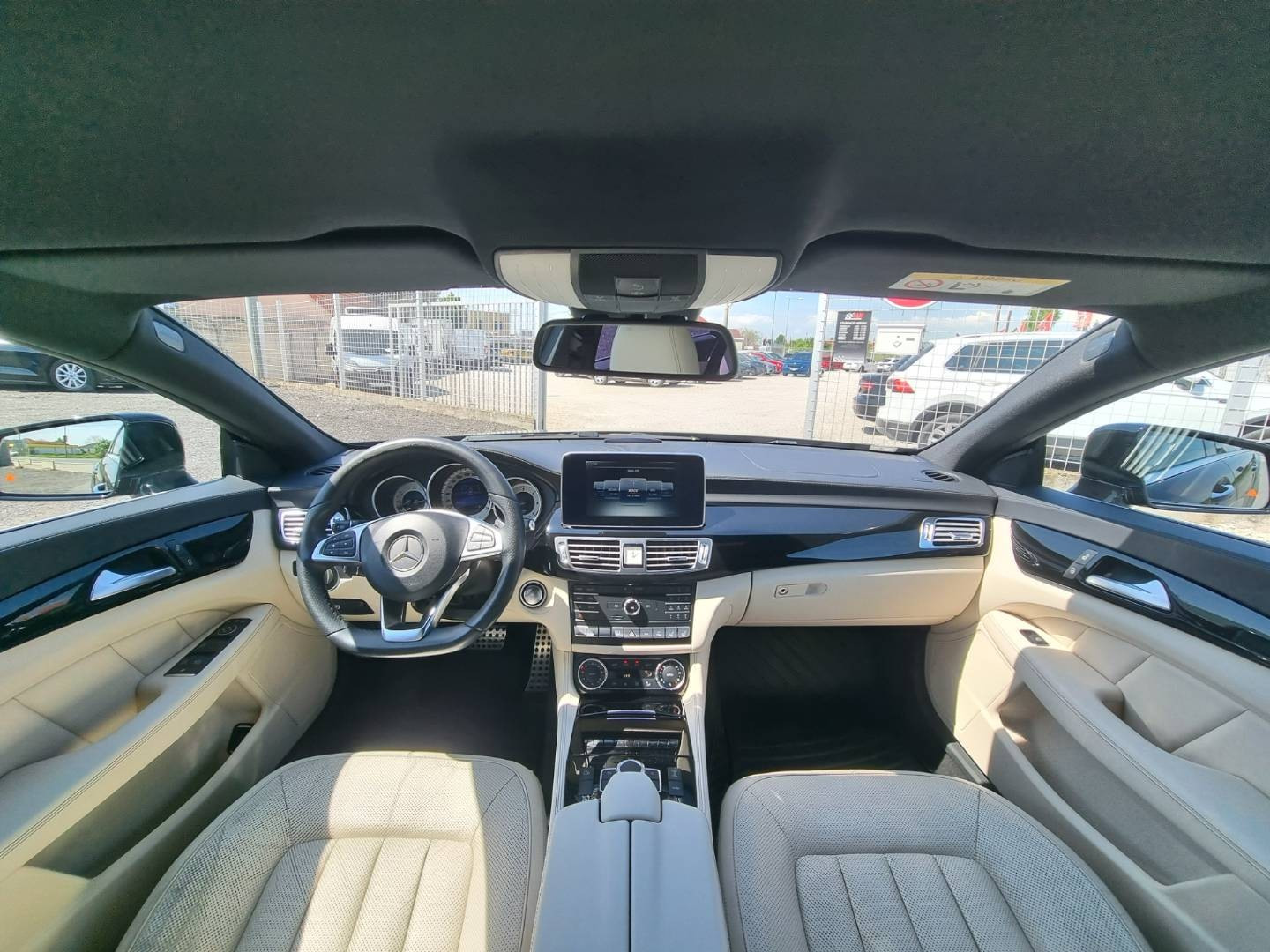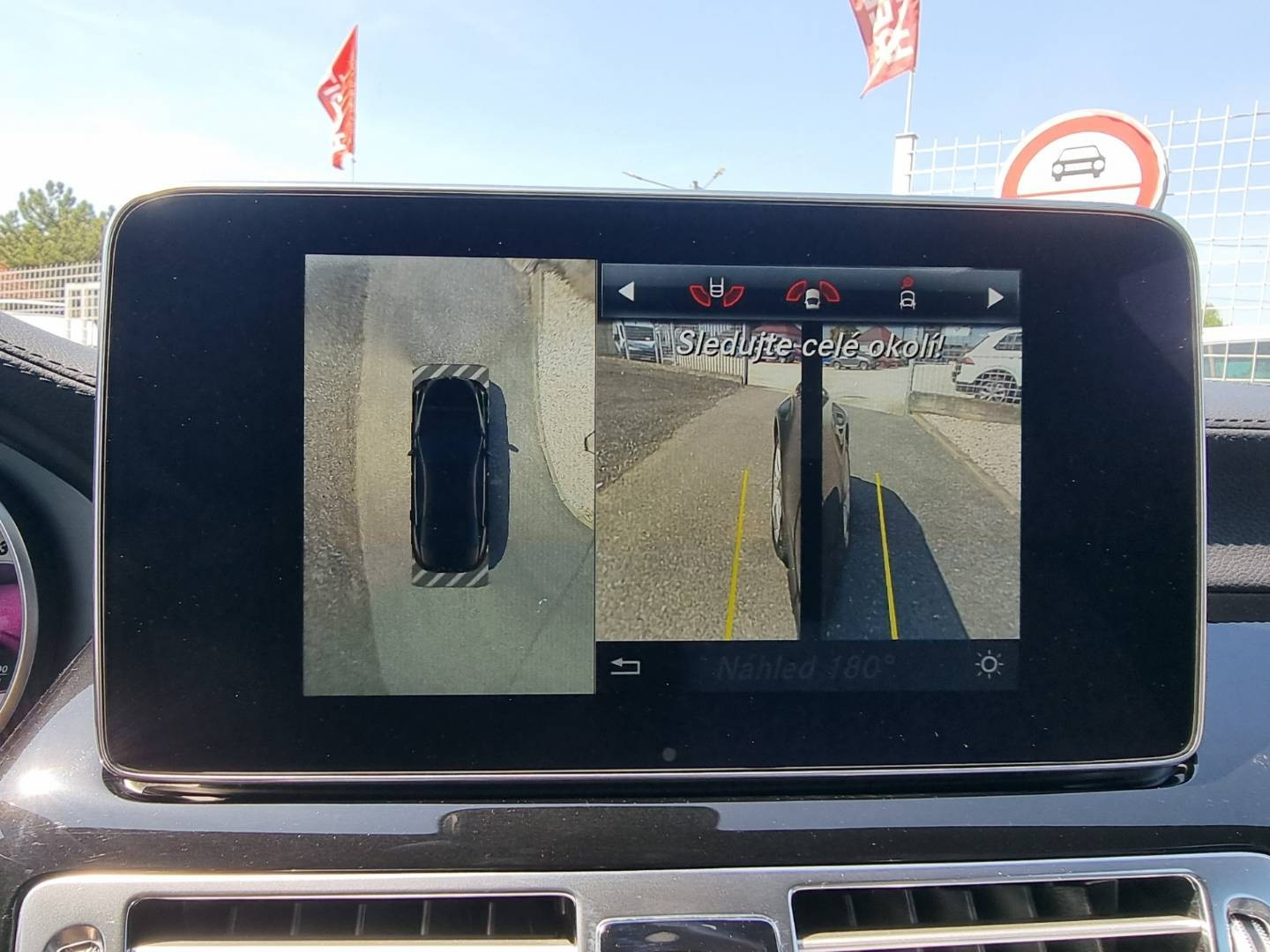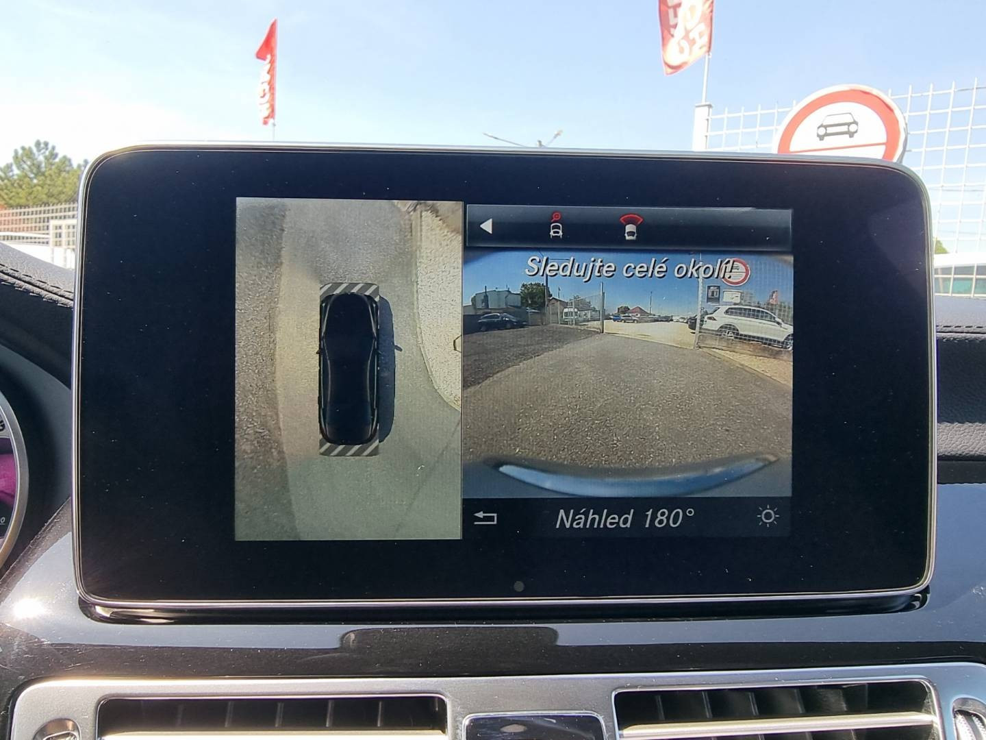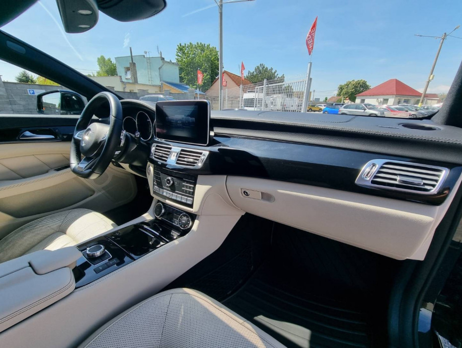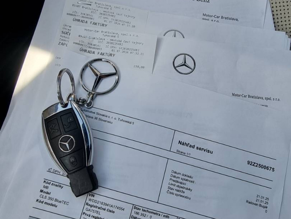 Ovládanie okien na diaľkové ovládanie, El.sklopné zrkadlá, Detské poistky okná/ dvere, Automatické svietenie, Inteligentné Multibeam LED svetlomety, Dosvetlovanie odchodu/ príchodu, Zadné LED svetlomety, Tripling, Nastaviteľný volant, Limiter, SD karta/ 2x USB/ BT- audio vstup, Nastaviteľný režim radenia, E/ S/ M, ECO režim, Nastaviteľný režim jazdy Sport/ Comfort, El.roletka zadného okna, Optický parkovací systém, 4x kamera s 360' zobrazením, Zadná lakťová opierka, Bedrová opierka, Interiér v elegantnej svetlej koži s perforáciou a čiernou stropnicou, Gumené rohože, Protikolízny systém Collision Prevention Assist Plus, Originál 18" AMG hliníkové disky, Textilné AMG koberce,