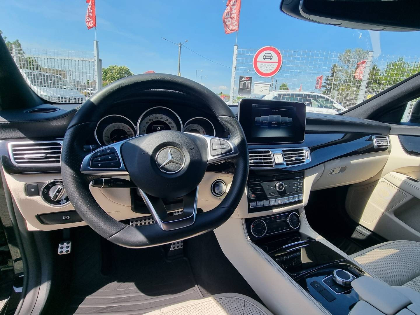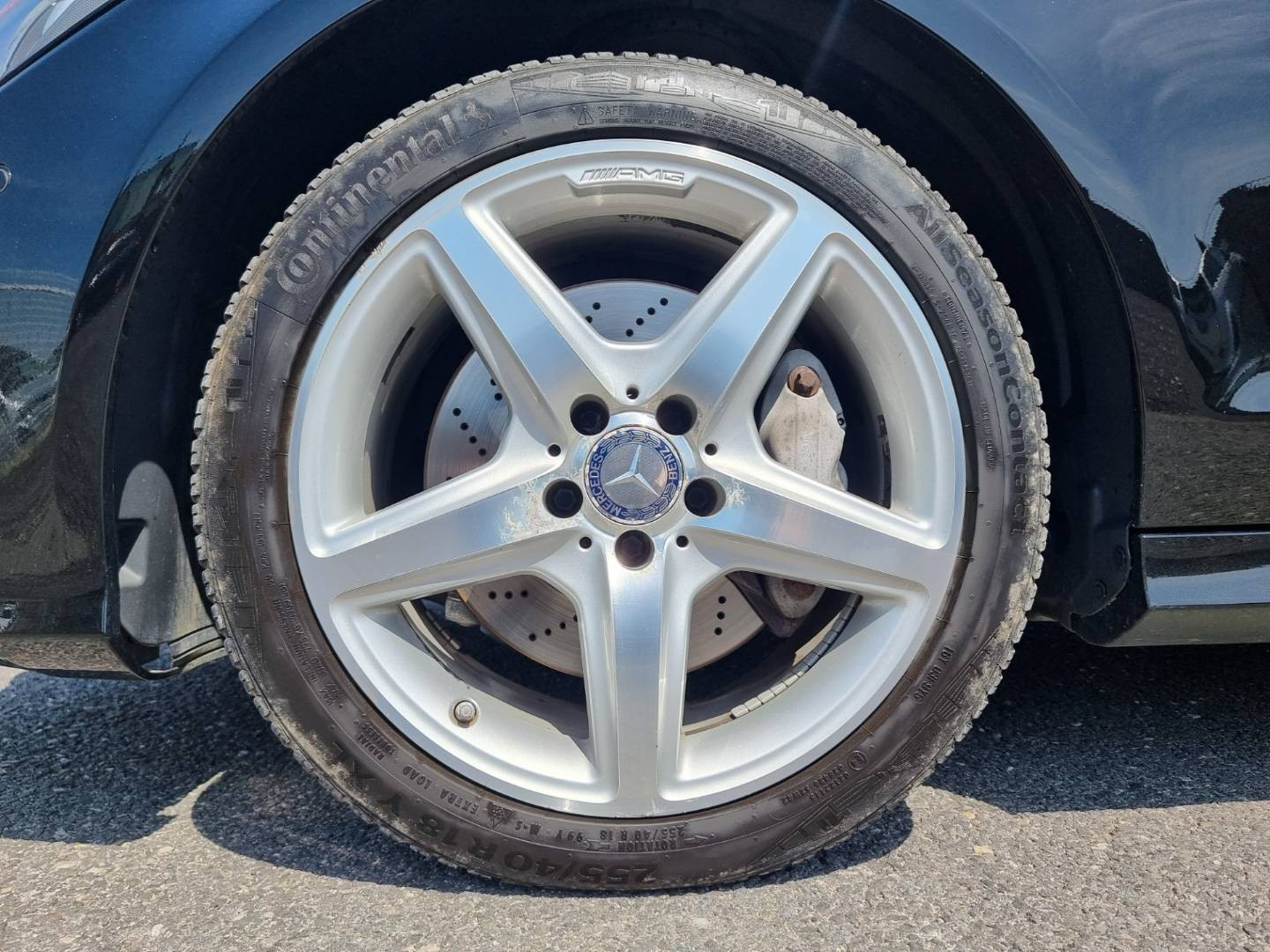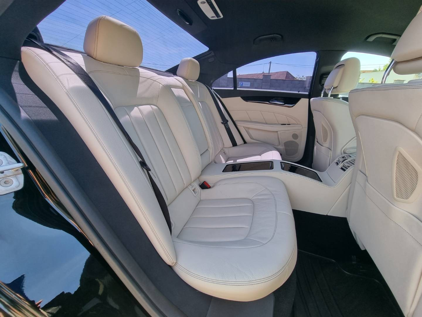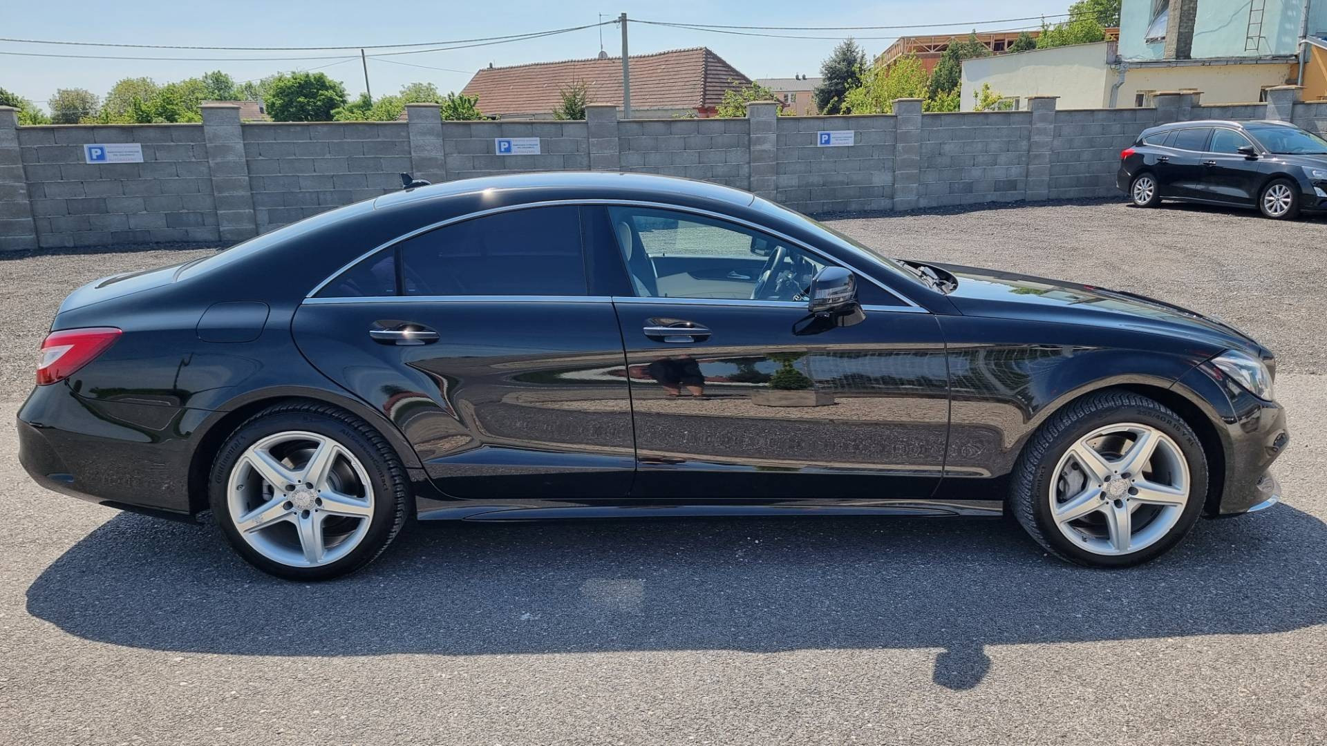 Ovládanie okien na diaľkové ovládanie, El.sklopné zrkadlá, Detské poistky okná/ dvere, Automatické svietenie, Inteligentné Multibeam LED svetlomety, Dosvetlovanie odchodu/ príchodu, Zadné LED svetlomety, Tripling, Nastaviteľný volant, Limiter, SD karta/ 2x USB/ BT- audio vstup, Nastaviteľný režim radenia, E/ S/ M, ECO režim, Nastaviteľný režim jazdy Sport/ Comfort, El.roletka zadného okna, Optický parkovací systém, 4x kamera s 360' zobrazením, Zadná lakťová opierka, Bedrová opierka, Interiér v elegantnej svetlej koži s perforáciou a čiernou stropnicou, Gumené rohože, Protikolízny systém Collision Prevention Assist Plus, Originál 18" AMG hliníkové disky, Textilné AMG koberce,