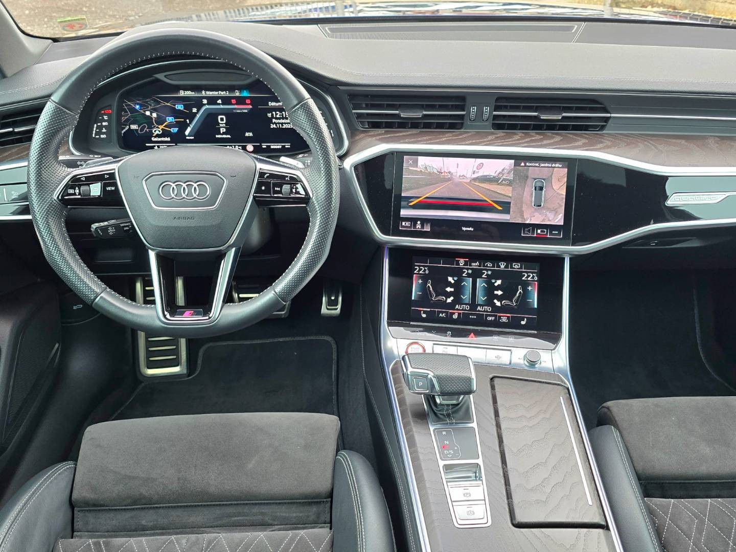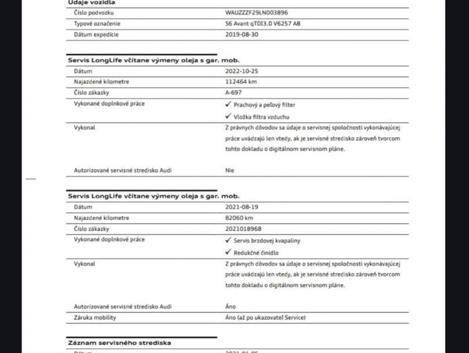 VÝBAVA VOZIDLA: -Cenníková cena nového 120.000 eur... -Vozidlo disponuje maximálnou možnou výbavou so všetkými príplatkami... -Nádherná Modrá Navarra perleťová farba... -VZDUCHOVÝ PODVOZOK... -Príplatkové RS Alcantara športové sedačky... -Panoramatická strecha... -Zadná natáčacia náprava... -Príplatkové kované disky AUDI SPORT R21... -Doplnkové prídavné kúrenie... -Príplatková hudba Bang&Olufsen... -Head-up display... -Voľba vône parfumu zima/leto + ionizácia... -FULL MATRIX PREDNÉ AJ ZADNÉ SVETLÁ... -Adaptívny podvozok... -Alcantara interiér... -Elektrické sklopné ťažné zariadenie... -360kamery okolo celého auta... -Akustický balik skiel - dvojité predné sklá... -MRTVÝ UHOL - Side Assist... -VIRTUAL COCPIT S NAJVAČŠOU OBRAZOVKOU A OVLADANÍM GESTAMI... -VYHRIEVANÉ PREDNÉ SEDAČKY... -VYHRIEVANÝ VOLANT... -4 zónová automatická klimatizácia... -AMBIENTNÉ OSV. INTERIERU S MOŽNOSŤOU ZMENY FARBY... -BEZDRÔTOVÝ APPLE CAR PLAY ANDROID AUTO... -Bezdrôtové nabíjanie zariadenia... -Ergo-Active...Pamäťové a plne elektrické sedačky vodiča a spolujazdca... -LED predné svetlomety s automatickým natáčaním do zákruty... -LANE ASSIT, MRVÝ UHOL... -Automatické diaľkové svetlá... -Elektrický kufor... -Riadenie rýchlostí na volante-F1, Limiter,... -Slovenské menu, 2xSD karta/AUX/W-Lan/USB... -BT-audio vstup, MirrorLink, Car play... -ESC Sport... -Rozpoznávanie únavy vodiča, Funkcia brzdy pri posune... -Čítanie dopravných značiek a maximálnej povolenej rýchlosti.... -Interiér s elegantnými športovými sedačkami a volantom... -Letné R21 hliníkové disky... -Samozaparkovanie-Parkpilot...