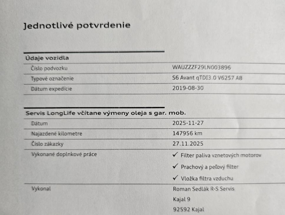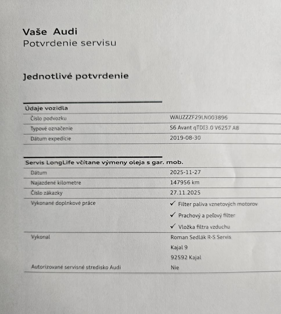 -Audi S6-Quattro-Full výbava-TOP -MOŽNOSŤ PREVZATIA VÁŠHO VOZIDLA A POUŽIŤ HO AKO AKONTÁCIU -MOŽNOSŤ VÝMENY VÁŠHO STARÉHO VOZIDLA ZA NOVÉ -VOZIDLO PO 1. MAJITEĽOVI, -Bez akéhokoľvek poškodenie...stav nového auta -NEBÚRANÉ ...Komplet pôvodný lak na celom aute !!! -2 sady kolies original AUDI -1.majiteľ -Uplná servisná história -Možnosť úveru už od 0% akontácie -Garancia stavu kilometrov -Pravidelný servis iba AUDI -Komplet výpis servisných úkonov k autu -Letné prezutie originál R21 -Zimné prezutie R19 -Aktuálne po vymene oleja+všetkých filtrov