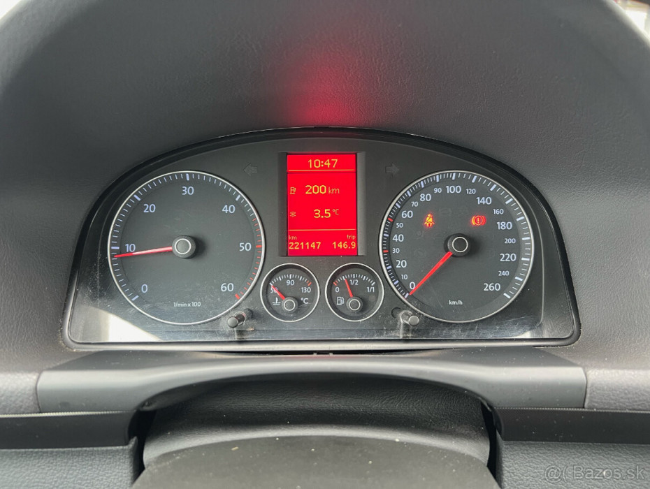 Predám Volkswagen Touran facelift 1,9TDI nafta, 77kW, MT/6, rok:05.2009. KM:221000. VIN číslo na vyžiadanie. Výbava: el. predné okná, el. a vyhrievané spätné zrkadlá, palubný počítač, tempomat, výškovo nastaviteľný volant a predné sedadlá, vyhrievané predné sedadlá, klimatizácia, ostrekovanie svetlometov, strešné nosiče, ABS, ESP, servoriadenie a iné. STK a EK je platná do 30.10.2027. Cena auta je 4590 euro plus dohoda možná. Možnosť vybaviť aj na splátky (nie na notársku zmluvu). Tel.č.:0944117396