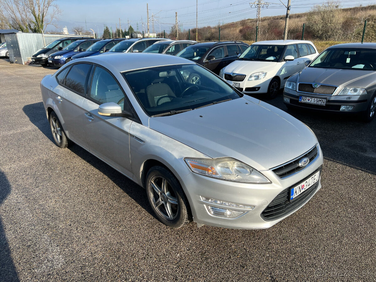 Predám Ford Mondeo MK4 2,0TDCI nafta, 103kW, MT/6, rok:01.2011. KM:266000. VIN číslo na vyžiadanie. Výbava: 4x el. okná, el. nastaviteľné spätné zrkadlá, palubný počítač, tempomat, výškovo nastaviteľný volant a predné sedadlá, multifunkčný volant, automatická dvojzónová klimatizácia, LED denné svietenie, predné hmlové svetlá, fólie na zadných oknách s certifikátom, ABS, ESP, servoriadenie a iné. STK a EK je platná do 08.02.2027. Cena auta je 2890 euro plus dohoda možná. Možnosť vybaviť aj na splátky (nie na notársku zmluvu). Tel.č.:0944117396