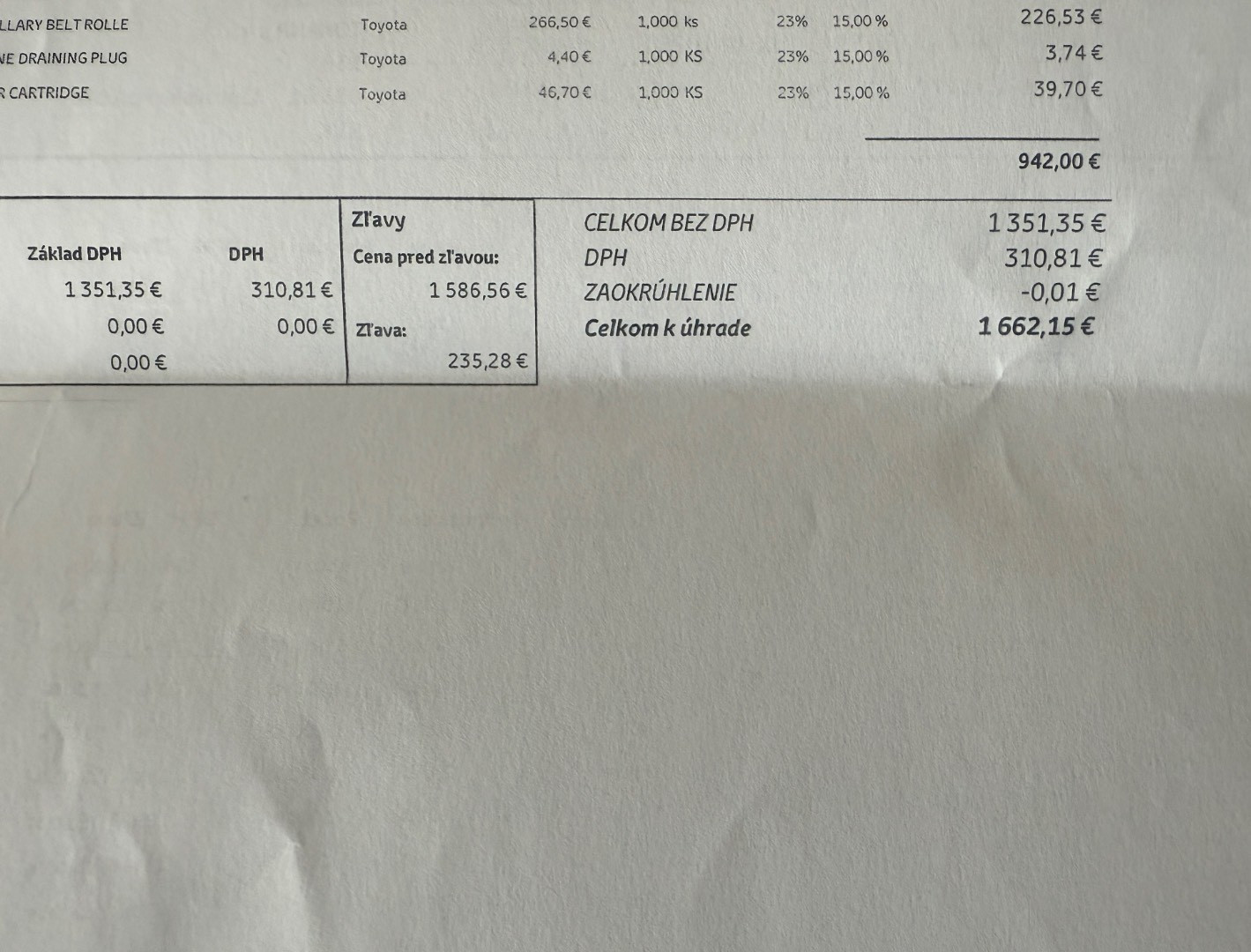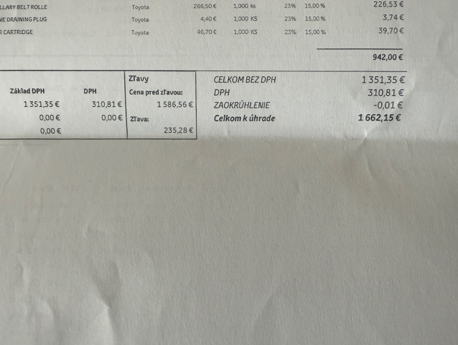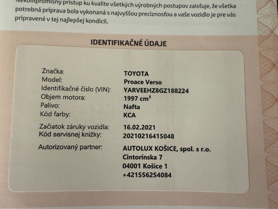 Auto ako nové kúpené v SR ....Pravidelne servisované v autorizovanom servise Toyota ....Aktuálne po servise / viď. faktúra / ....Bez investícií .....V záruke. Vozidlo sa používa , v prípade záujmu o obhliadku volať deň dopredu na číslo 091522226.