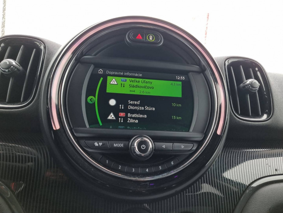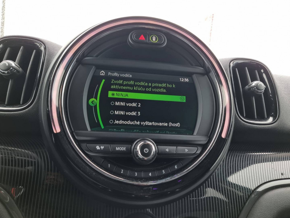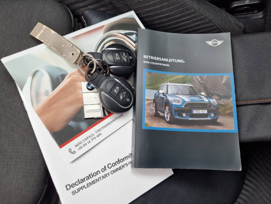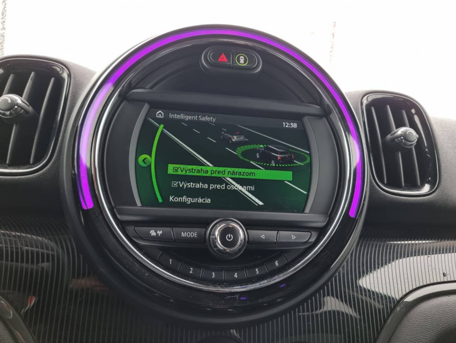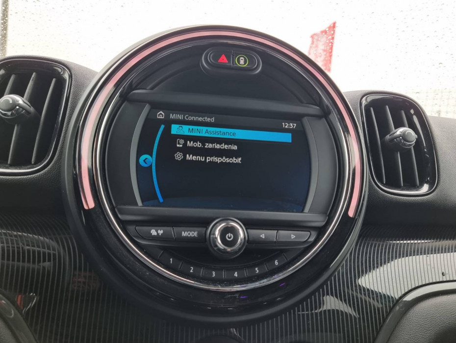 Detské poistky okná/ dvere, El.sklopné zrkadlá, Naklápanie spätného zrkadla pri cúvaní, Automatické svietenie, Predné a zadné LED svetlomety, Adaptívne svetlomety, Dosvetlovanie odchodu/ príchodu, Tripling, Nastaviteľný volant, Limiter, Slovenské menu, hlasové ovládanie entertainmentu v Angličtine, USB/ AUX/ BT- audio vstup, Optický parkovací systém, MINI Connected, Výstražný protikolízny systém, Výstraha pri prekročení rýchlosti, Programovateľná nezávislá ventilácia, Výstraha pred vstupom chodcov do dráhy vozidla, MINI Country Timer, Personalizácia vozidla ( 3x vodič + hosť), Displej zobrazenia prenosu sily, e- Manuál, El.ručná brzda, Interiér v kombinácii textil- koža, Výškovo nastaviteľné sedadlá, Nastaviteľná dĺžka sedákov, 2x USB charge, Ochranná vanička kufra, Dvojité dno kufra, 2.rada sedadiel polohovateľná/ sklopná do roviny, Originál 17" hliníkové disky, Chrómované olemovanie predných a zadných svetlometov, 3x Isofix, Aktívne ambientné LED orámovanie hl.displeja, Zobrazovanie rýchlostných limitov, TMC- dopravné hlásenia