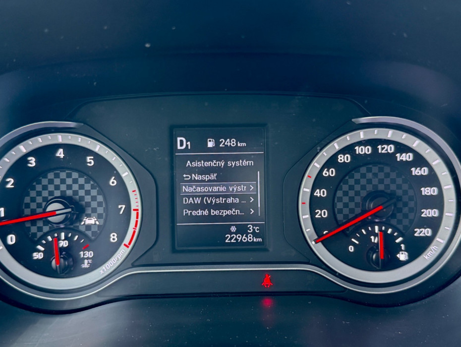 Podlahové gumové rohože *** Povinná výbava *** Plnohodnotná rezerva *** Sezónne prezutie na diskoch *** Celoplošné kryty kolies *** Diaľkové ovládanie centrálneho zamykania s alarmom *** Osvetlenie batožinového prietoru *** Ovládanie audio systému na volante *** Systém autonómneho núdzového brzdenia FCA a systém varovania pred čelným nárazom FCW *** Systém na automatické udržanie vozidla v jazdnom pruhu LKA *** Výškovo nastaviteľné sedadlo vodiča *** Výškovo nastaviteľný volant *** Zadné sedadlá delené v pomere 6:4