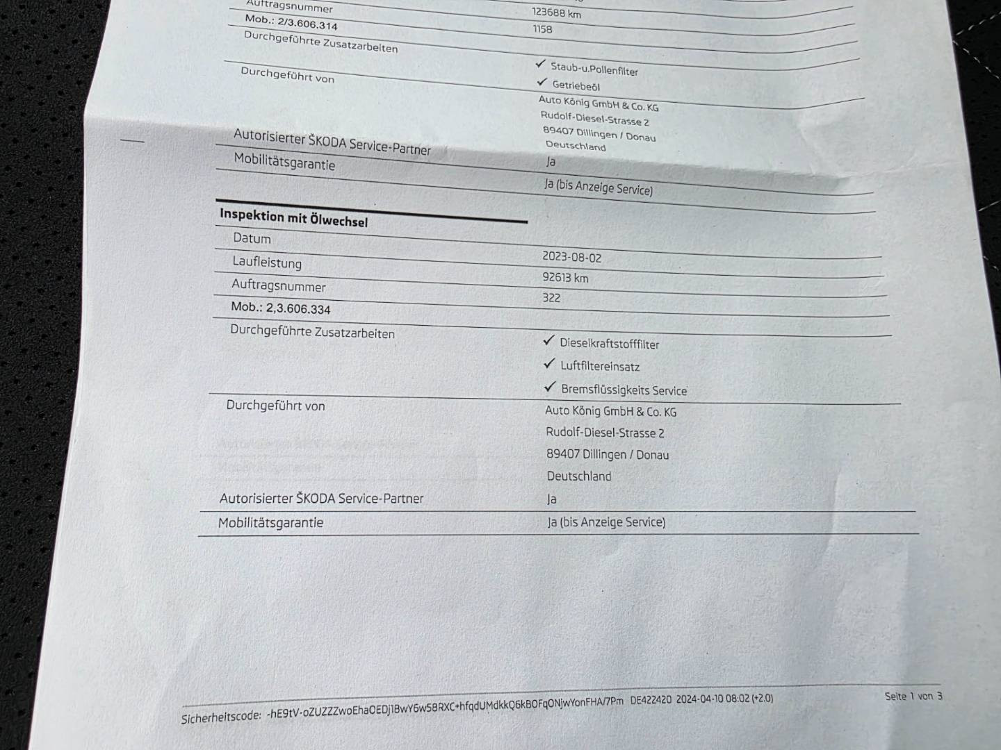 Úplná servisná história